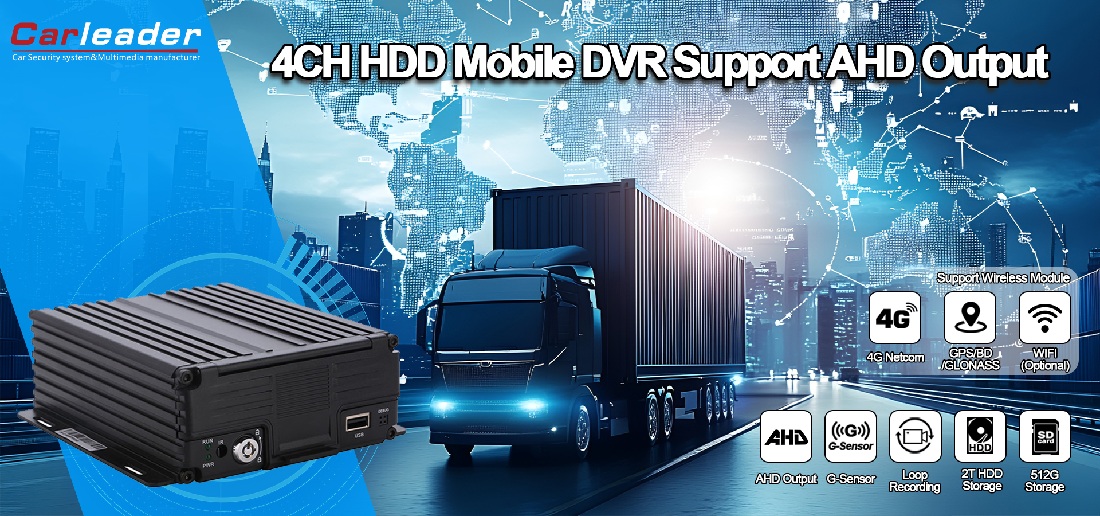 ကားတိုင်ကြီးသမား4Ch 1080p HDD Mobile DVR ကို Ahd output ကိုထောက်ပံ့သည်မျက်မှောက်ခေတ်မိုဘိုင်းဗွီဒီယိုစောင့်ကြပ်ကြည့်ရှုခြင်းအတွက်ခေတ်မီမိုဘိုင်းဗွီဒီယိုစောင့်ကြပ်ကြည့်ရှုခြင်း,