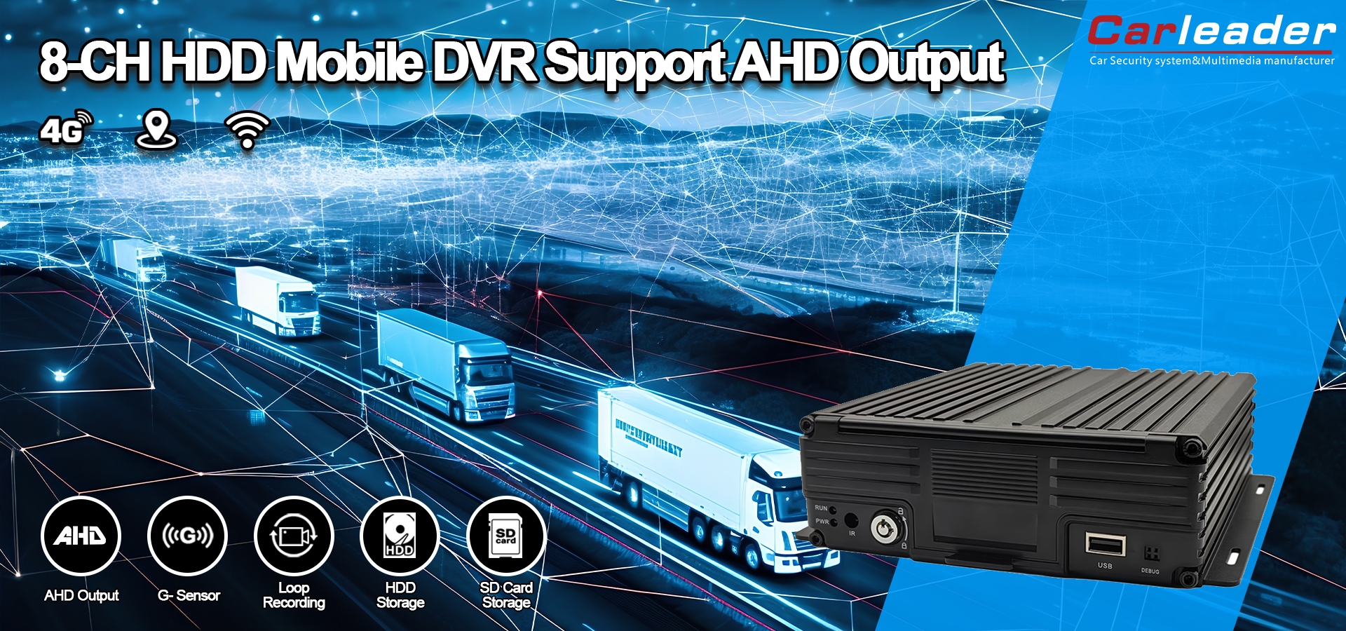 ကားခေါင်းဆောင်8CH 1080P HDD မိုဘိုင်း DVR ပံ့ပိုးမှု AHD Output သည် ရေယာဉ်စုစီမံခန့်ခွဲမှုနှင့် ခြေရာခံခြင်း၊ အများသူငှာ သယ်ယူပို့ဆောင်ရေးလုံခြုံရေး၊ ဥပဒေစိုးမိုးရေးနှင့် အရေးပေါ်ယာဉ်များ၊ ထောက်ပံ့ပို့ဆောင်ရေးနှင့် ကုန်တင်ပို့ဆောင်ရေး၊ ပုဂ္ဂလိကနှင့် လုပ်ငန်းသုံးယာဉ်ဘေးကင်းရေးတို့အတွက် စံပြ