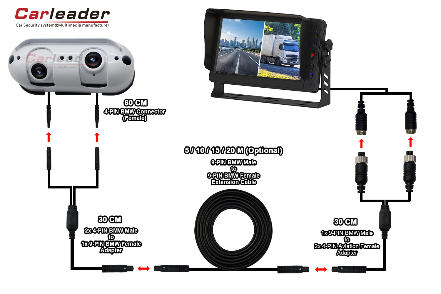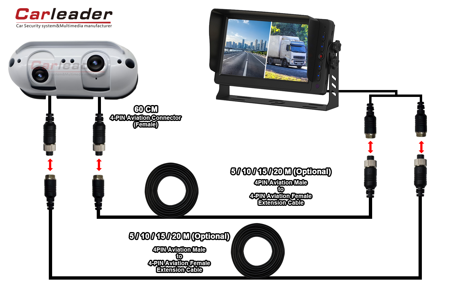 ကားခေါင်းဆောင်သည် မတူညီသော ဝိုင်ယာကြိုးများ လိုအပ်မှုနှင့် ကိုက်ညီစေရန် AHD Starlight Dual Lens Heavy Duty Rear View Camera အတွက် မတူညီသော ဝါယာကြိုးဖြေရှင်းချက် နှစ်ခုကို ပေးဆောင်ပါမည်-