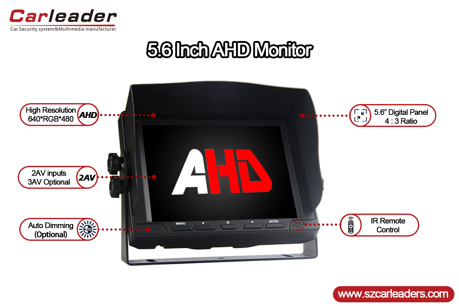 ကားခေါင်းဆောင်5.6 လက်မ 2CH AHD Inputs Vehicle Backup Monitorပရော်ဖက်ရှင်နယ်အဆင့် 5.6 လက်မဖြစ်သည်။AHD နောက်ကြည့် မော်နီတာယာဉ်ဘေးကင်းရေးနှင့် စောင့်ကြည့်ရေးစနစ်များအတွက် ကြည်လင်ပြတ်သားပြီး ယုံကြည်စိတ်ချရသော ပုံရိပ်ကို ပေးအပ်ရန် ဒီဇိုင်းထုတ်ထားသည်။ ခေတ်မီဒီဇိုင်းနှင့် ကြံ့ခိုင်သောလုပ်ဆောင်နိုင်စွမ်းများပါရှိသော၊ ၎င်းသည် ယုံကြည်စိတ်ချရသောနောက်ကြည့်ရန် လိုအပ်သော စီးပွားရေးလုပ်ငန်းနှင့် ကိုယ်ပိုင်ကားများအတွက် အကောင်းဆုံးဖြေရှင်းချက်တစ်ခုဖြစ်သည်။