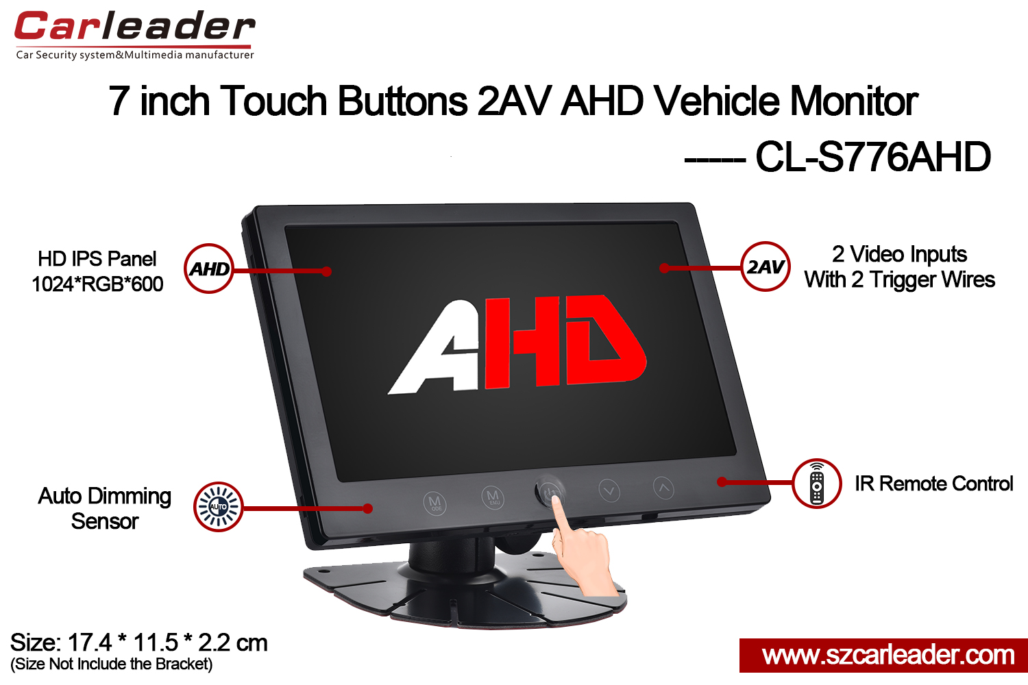 ကားခေါင်းဆောင်7 လက်မ IPS မျက်နှာပြင် 2CH AHD Input Touch Buttons Heavy Vehicle Monitorမော်တော်ယာဥ်၊ လုံခြုံရေး၊ ရေကြောင်းနှင့် စက်မှုလုပ်ငန်းသုံးအတွက် အထူးသင့်လျော်သည်။ယုံကြည်စိတ်ချရသော ပက်ကေ့ခ်ျတစ်ခုတွင် ကြာရှည်ခံမှု၊ ပြောင်းလွယ်ပြင်လွယ်နှင့် အရည်အသွေးမြင့် display စွမ်းဆောင်ရည်တို့ကို ပေါင်းစပ်ထားသည်။