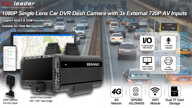 ကားခေါင်းဆောင်4CH AI စွမ်းအားဖြင့် ADAS+DSM Dash Camera ပံ့ပိုးမှု ဗီဒီယိုအထွက်အတွက် စံပြအဖြစ်- လုပ်ငန်းသုံးရေယာဉ်များ၊ ထောက်ပံ့ပို့ဆောင်ရေးယာဉ်များ၊ အများသူငှာ သယ်ယူပို့ဆောင်ရေးနှင့် ကိုယ်ပိုင်ယာဉ်များ ပိုမိုကောင်းမွန်သော ဘေးကင်းမှု၊ အချိန်နှင့်တပြေးညီ စောင့်ကြည့်စစ်ဆေးခြင်းနှင့် ယုံကြည်စိတ်ချရသော အဖြစ်အပျက်များကို မှတ်တမ်းတင်ခြင်းတို့ကို ရှာဖွေနေပါသည်။